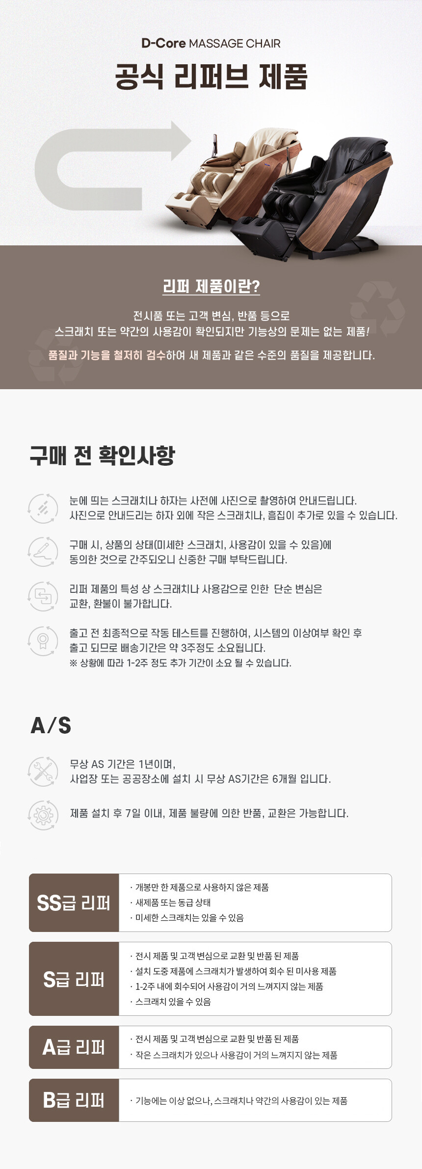 [본사인증 리퍼] B급 리퍼 디코어 씨러스 안마의자 DC-100K